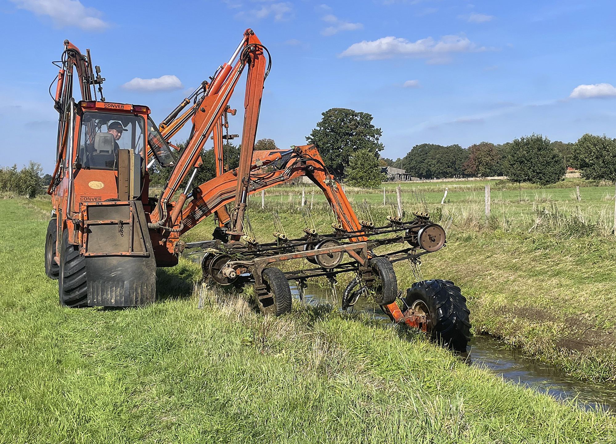 Platzpflege am ende der Start- und Landebahn. Am 01.10.2025 wurde die Mettinger Aa an unserem Platz von Gräsern und Unkraut mit einem beeindruckendem Gerät gepflegt.
